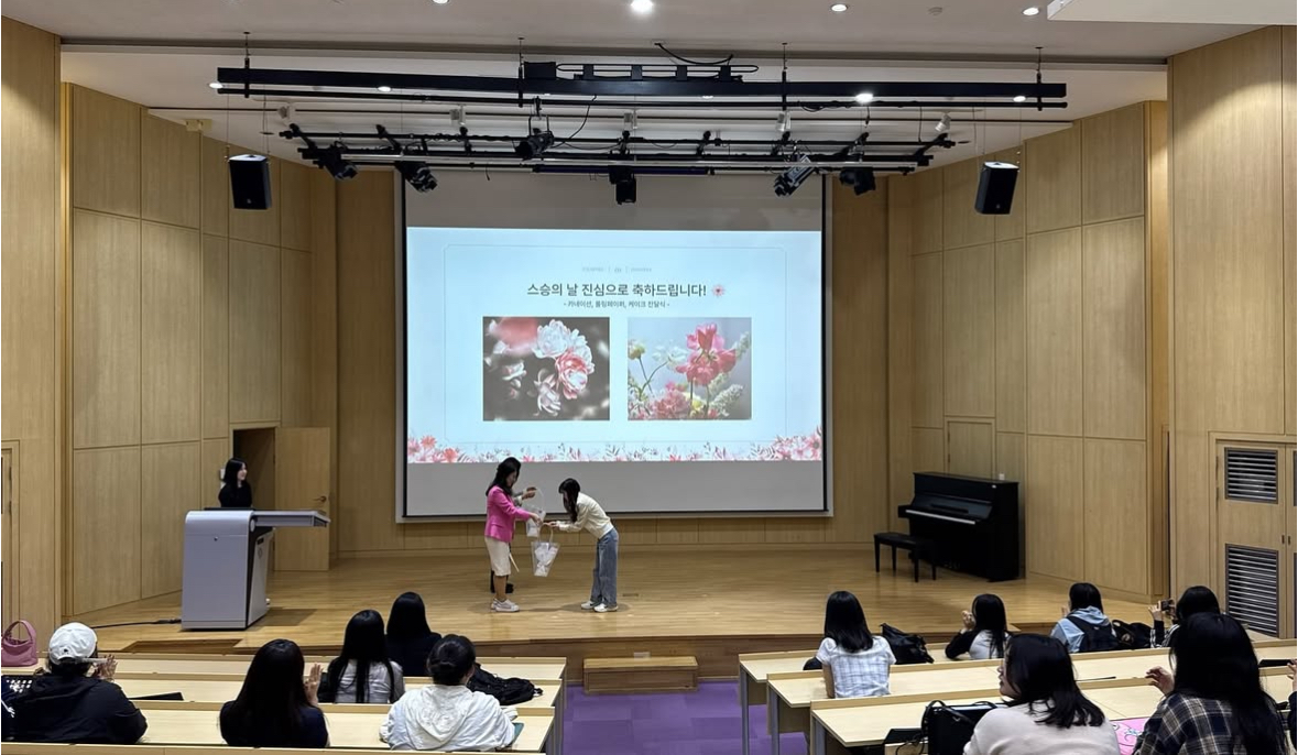 지난 5월12일 스승의 날을 미리 기념하며 아동교육학과 재학생들이 꽃과 레터링 케이크를 준비하여 교수님들께 드렸습니다!