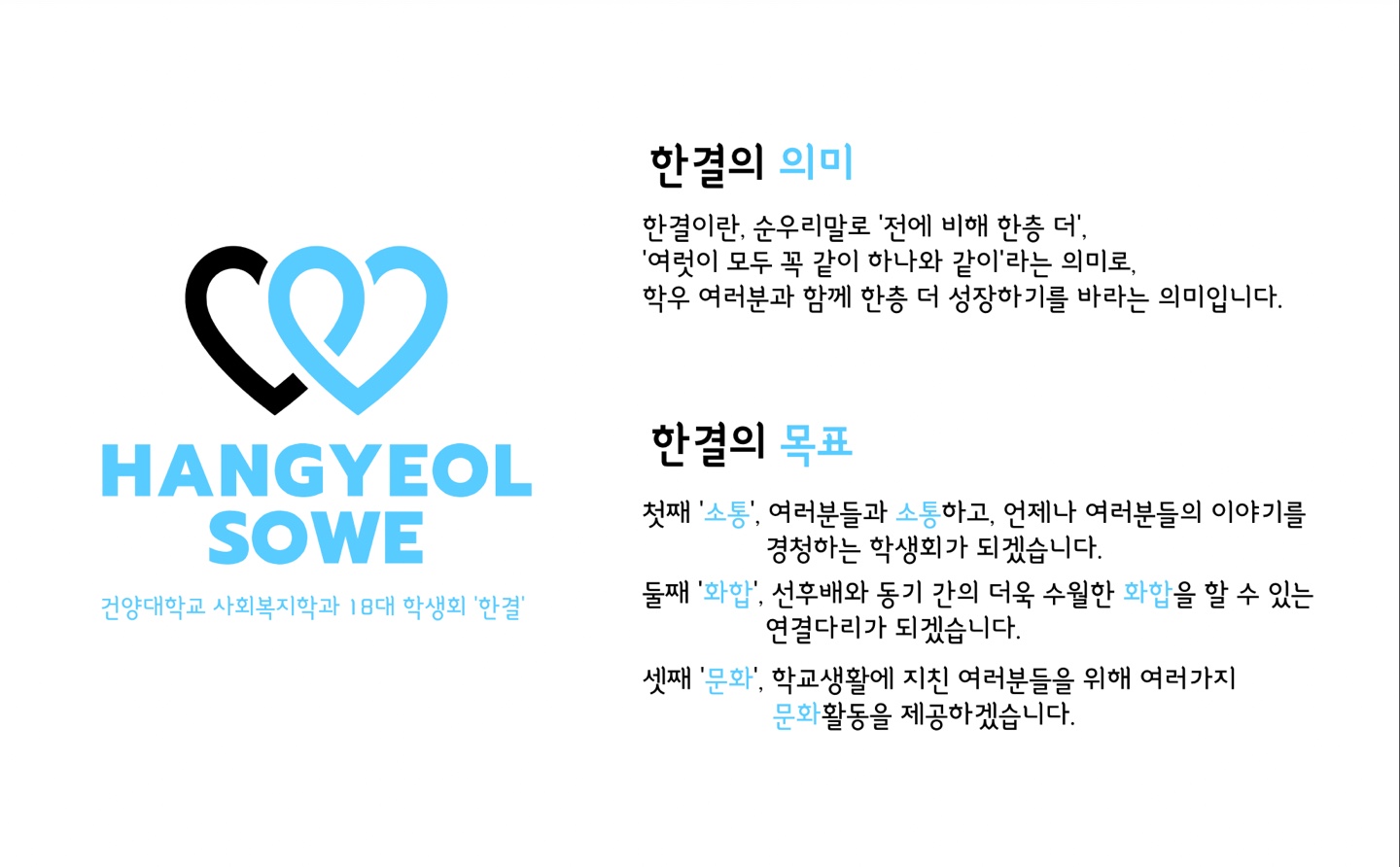 『 18대 학생회 ‘한결’ 』글의 상세내용을 확인하는 표로 제목, 부서명, 등록일, 조회, 첨부, 내용으로 나뉘어 설명합니다.